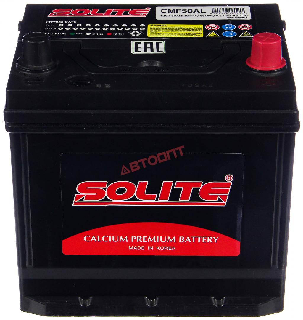 50 Ач SOLITE CMF (обрат.) 470 А B20 нижнее крепление (CMF50AL) (Корея)