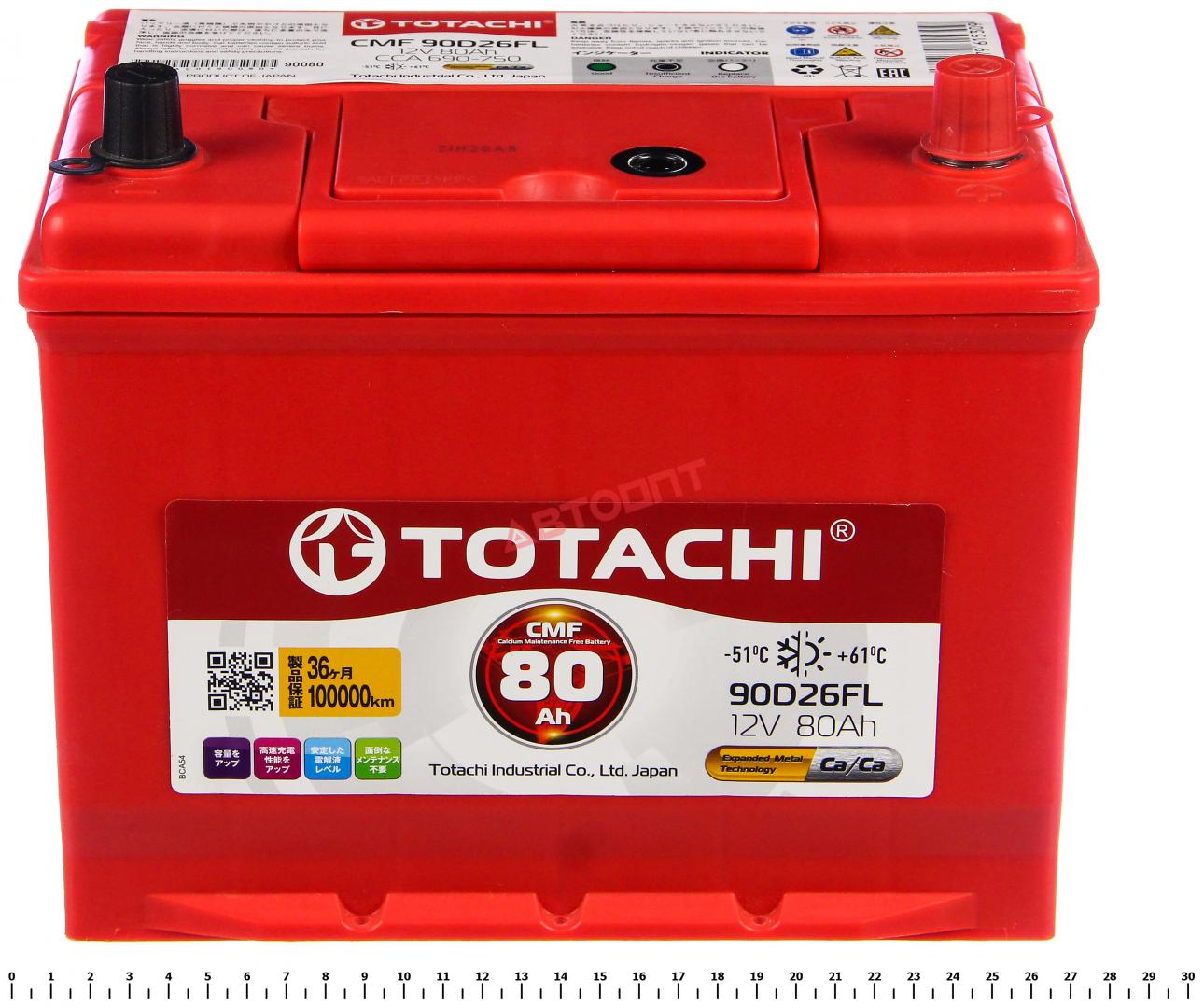 Аккумулятор TOTACHI KOR CMF 80Ач [Азиатский/Обратная полярность] 640A 90D26 FL