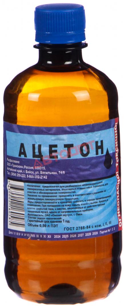 Ацетон 0.5 л ПЭТ "ФГУП "БОЗ"" (г.Бийск) 1 уп. содержит 20 шт