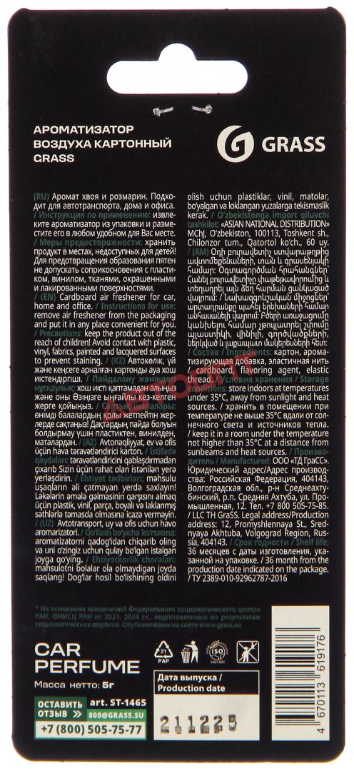 Ароматизатор картонный (Needles & rosemary) "GRASS" (ST-1465)