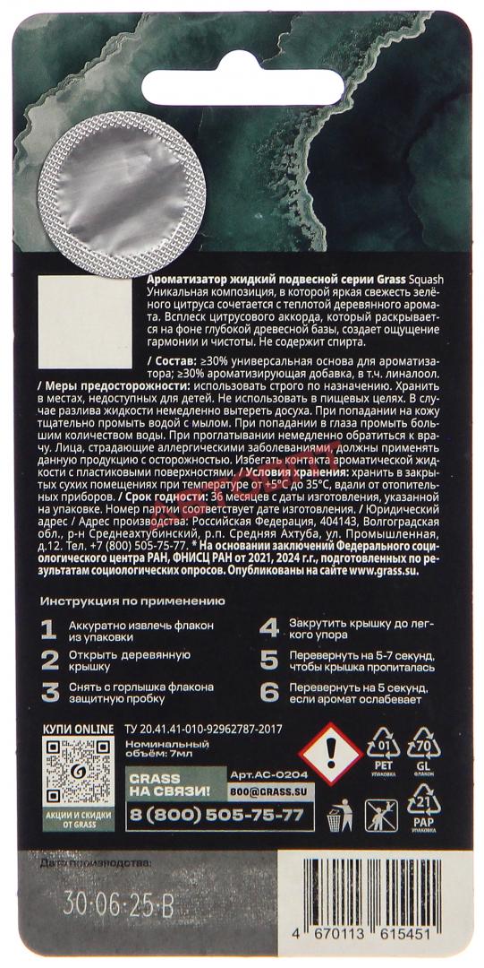 Ароматизатор жидкий подвесной "Squash" "GRASS" (AC-0204)