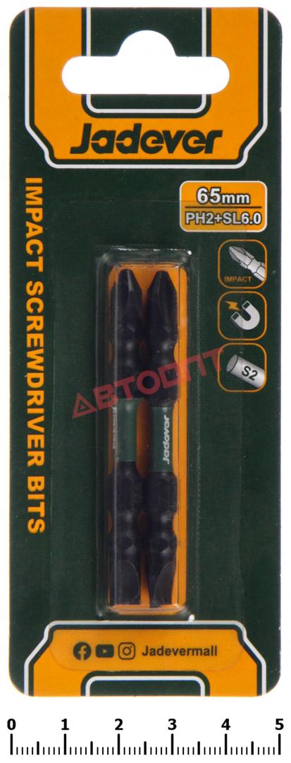 Бита PH2+SL6x 65мм (2шт), двусторонняя, ударная, блистер (JDSV3K63) "JADEVER"