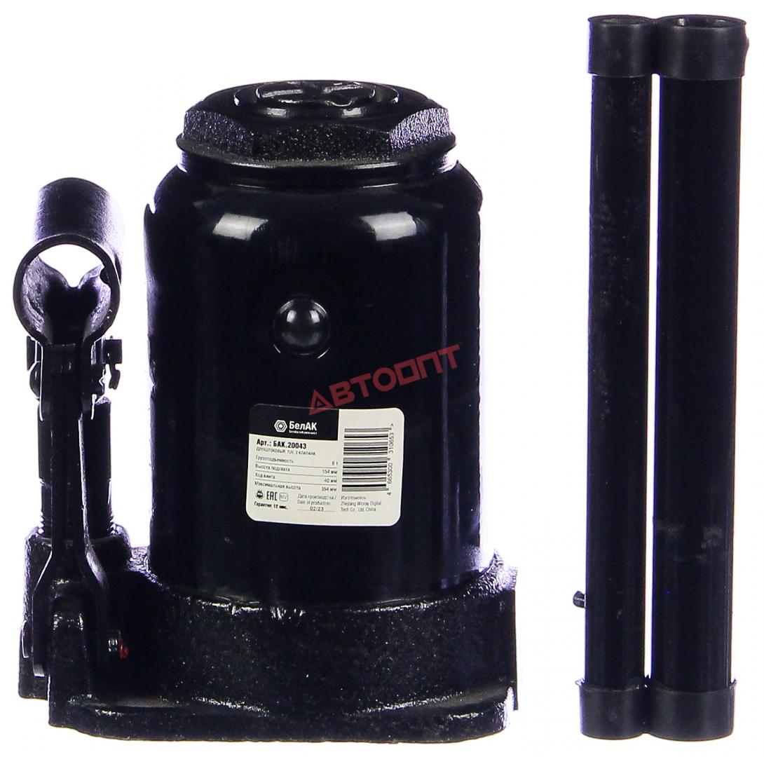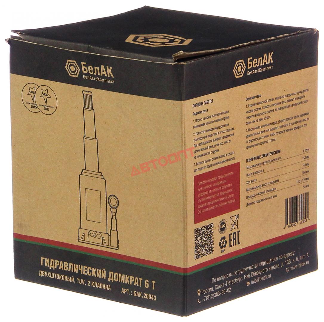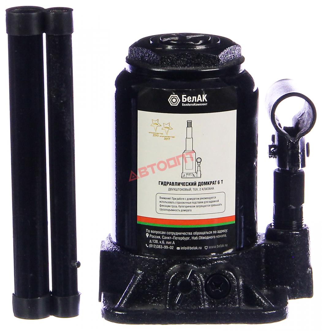 Домкрат гидравл. 6 т бутылочный (170-390мм), ДВУХШТОКОВЫЙ (БАК.20043) "БелАК"
