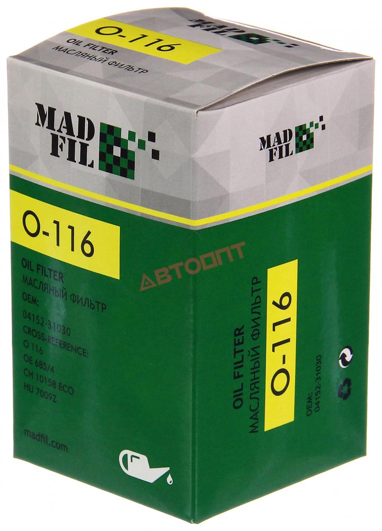 Фильтр масляный O-116 TOYOTA (04152-31030) "MADFIL"