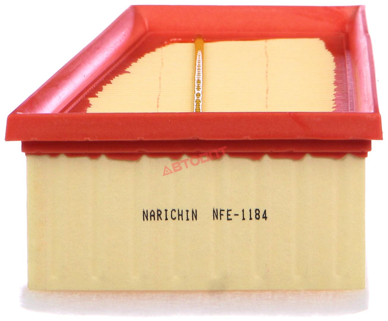 Фильтр возд.ВАЗ A-0166 DUSTER 1,6/2,0, LOGAN 1,6 16V K4M 697 '05-'09,SANDERO 1,6,CLIO SYMBOL 1,4 K4J780 '00-'08 - плоский NFE-1184 "NARICHIN" (Китай)