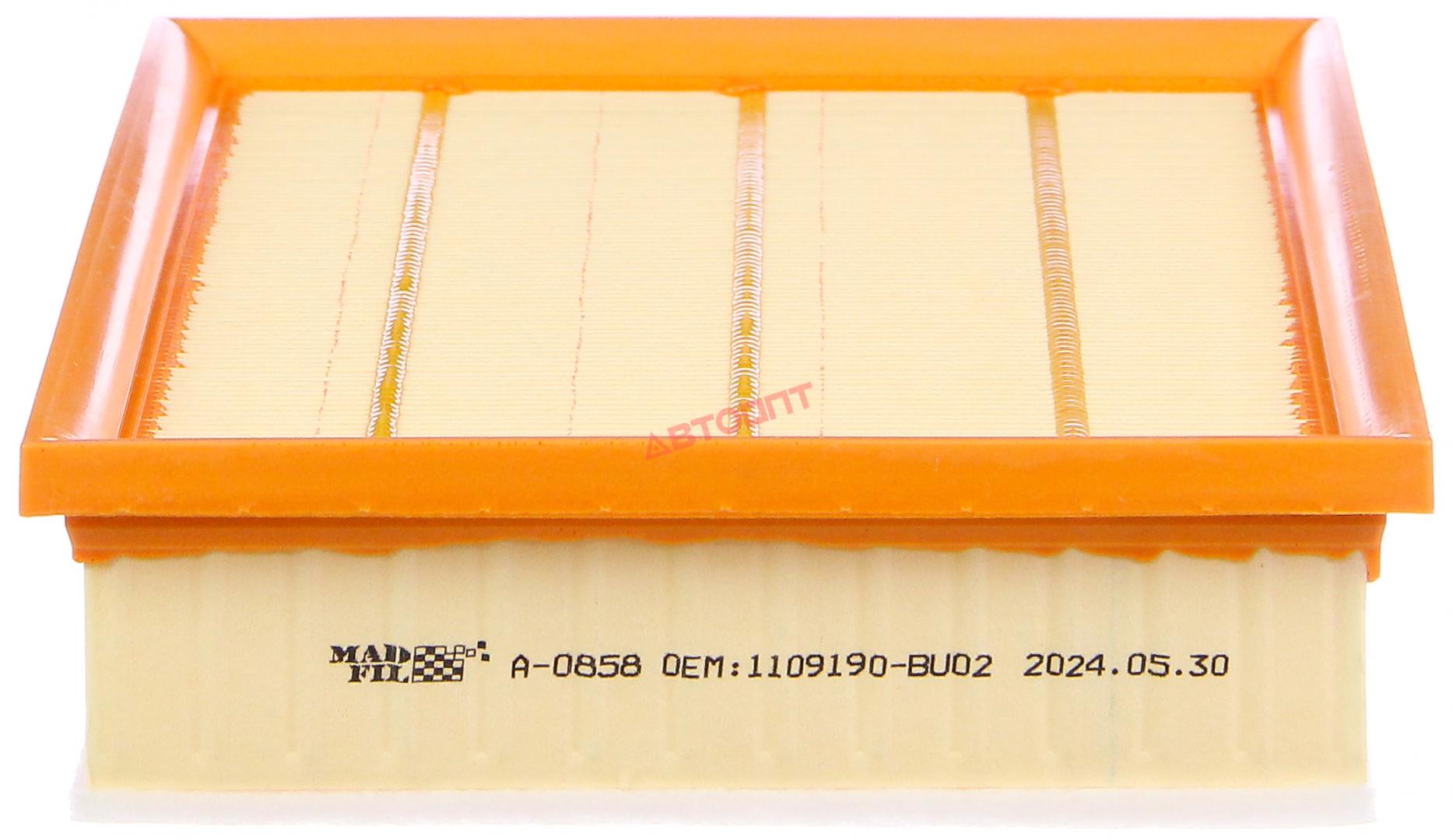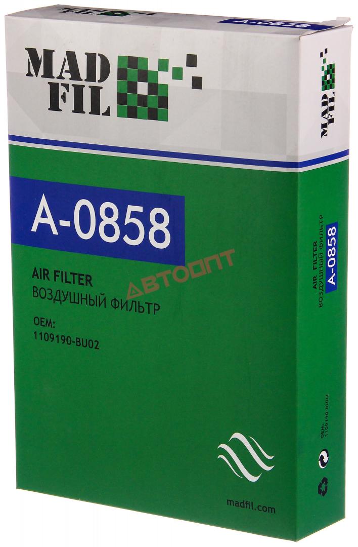 Фильтр воздушный A-0858 CHANGAN Hanter F70 10.19-, Hanter Plus 10.23-, PEUGEOT Landtrek (дв.1.9, D20T, 02.2020-) (1109190-BU02) " MADFIL"