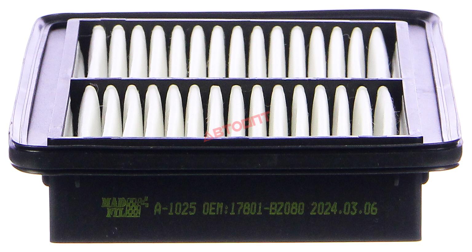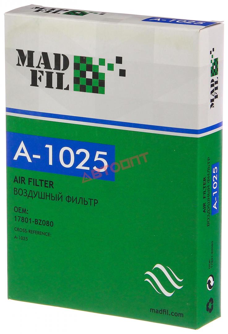 Фильтр воздушный A-1025 TOYOTA Liteace 01.08-06.10, Townace 02.08-, Townace Truck 01.08-07.10-, Townace Van 01.08-07.10- (17801-BZ080) " MADFIL"
