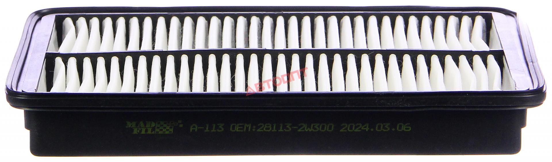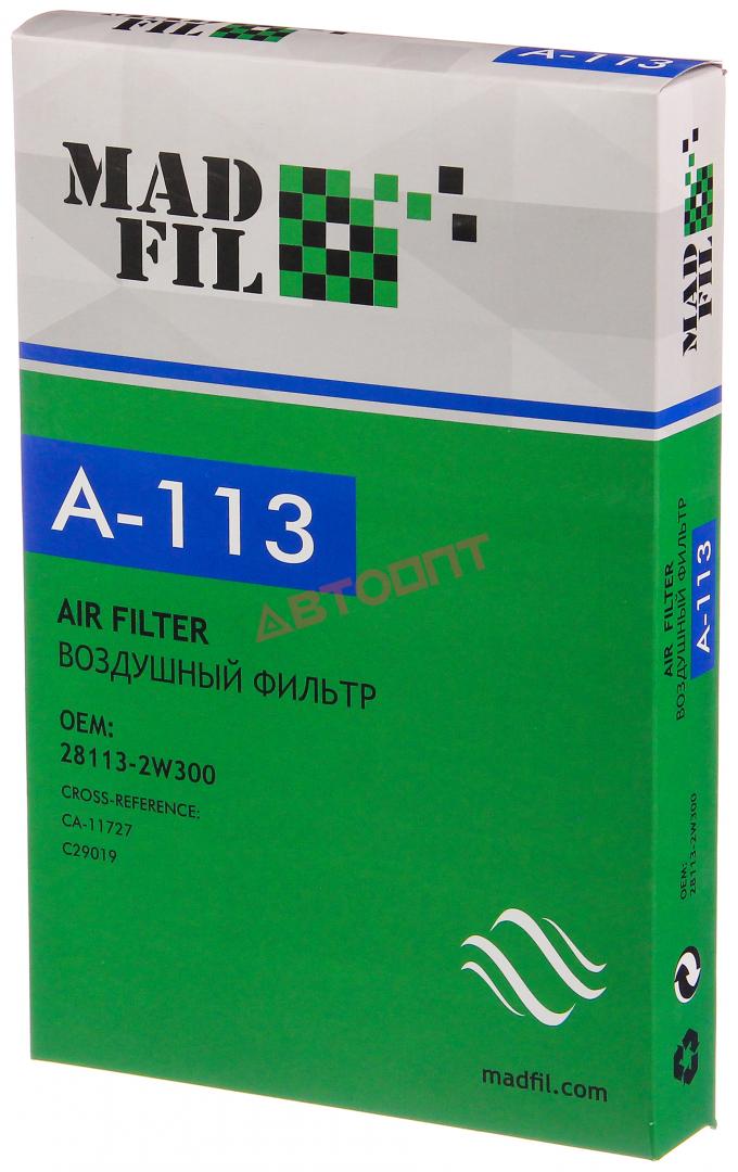 Фильтр воздушный A-113 HYUNDAI Grand Santa FE 01.13-/Santa FE 05.12-03.18, KIA Sorent 07.12-08.14 (28113-2W300) " MADFIL"