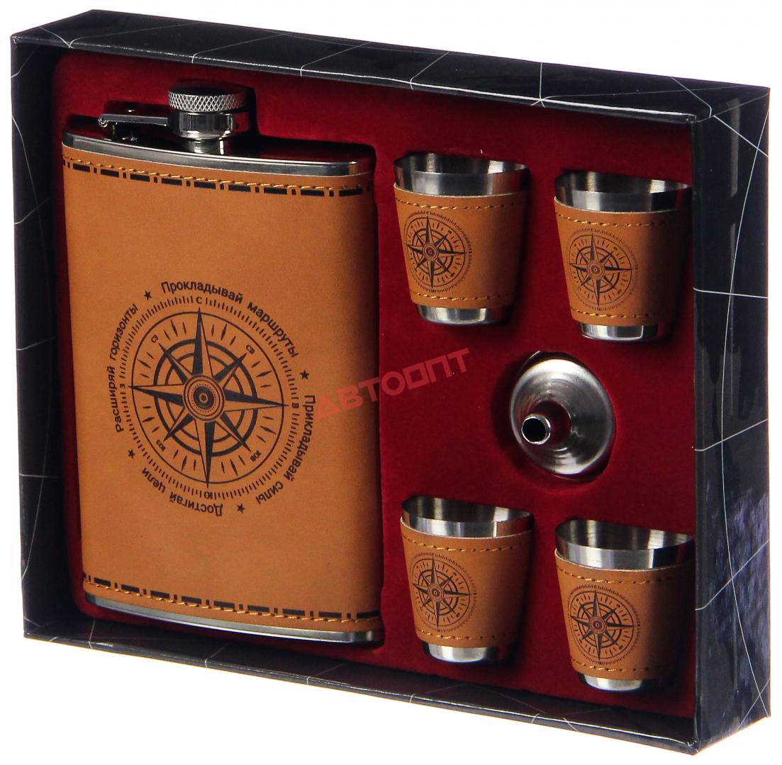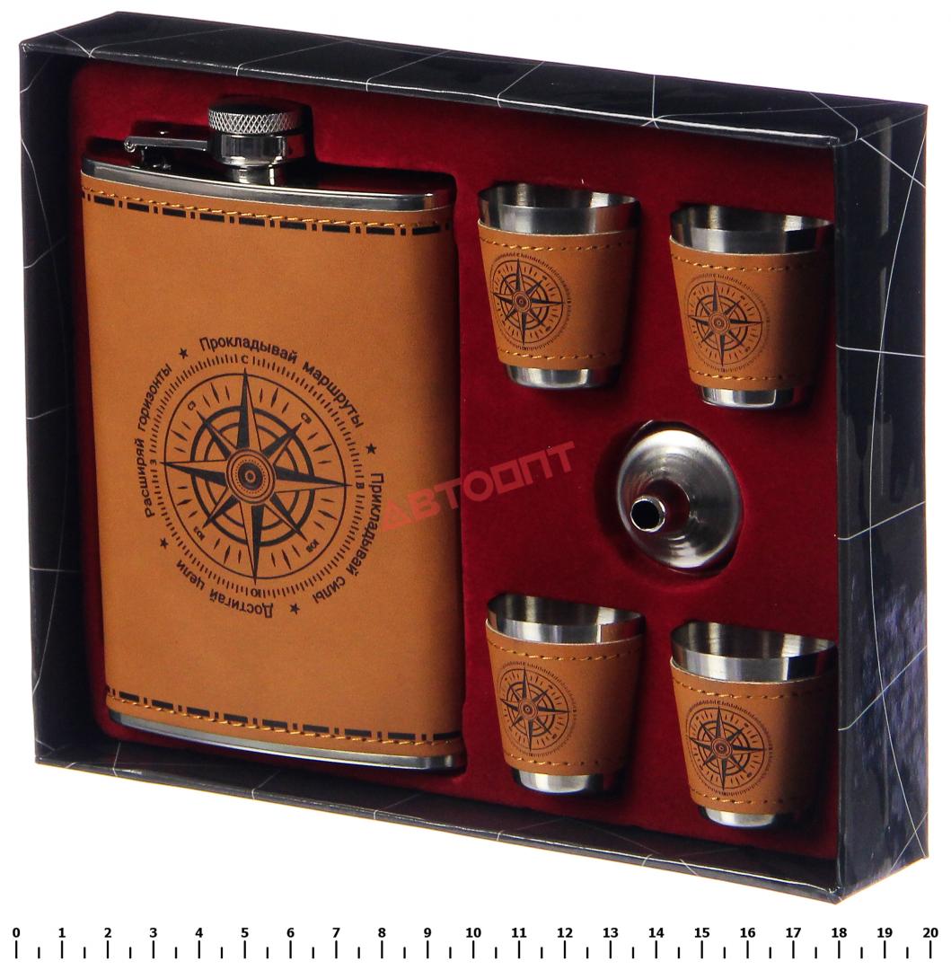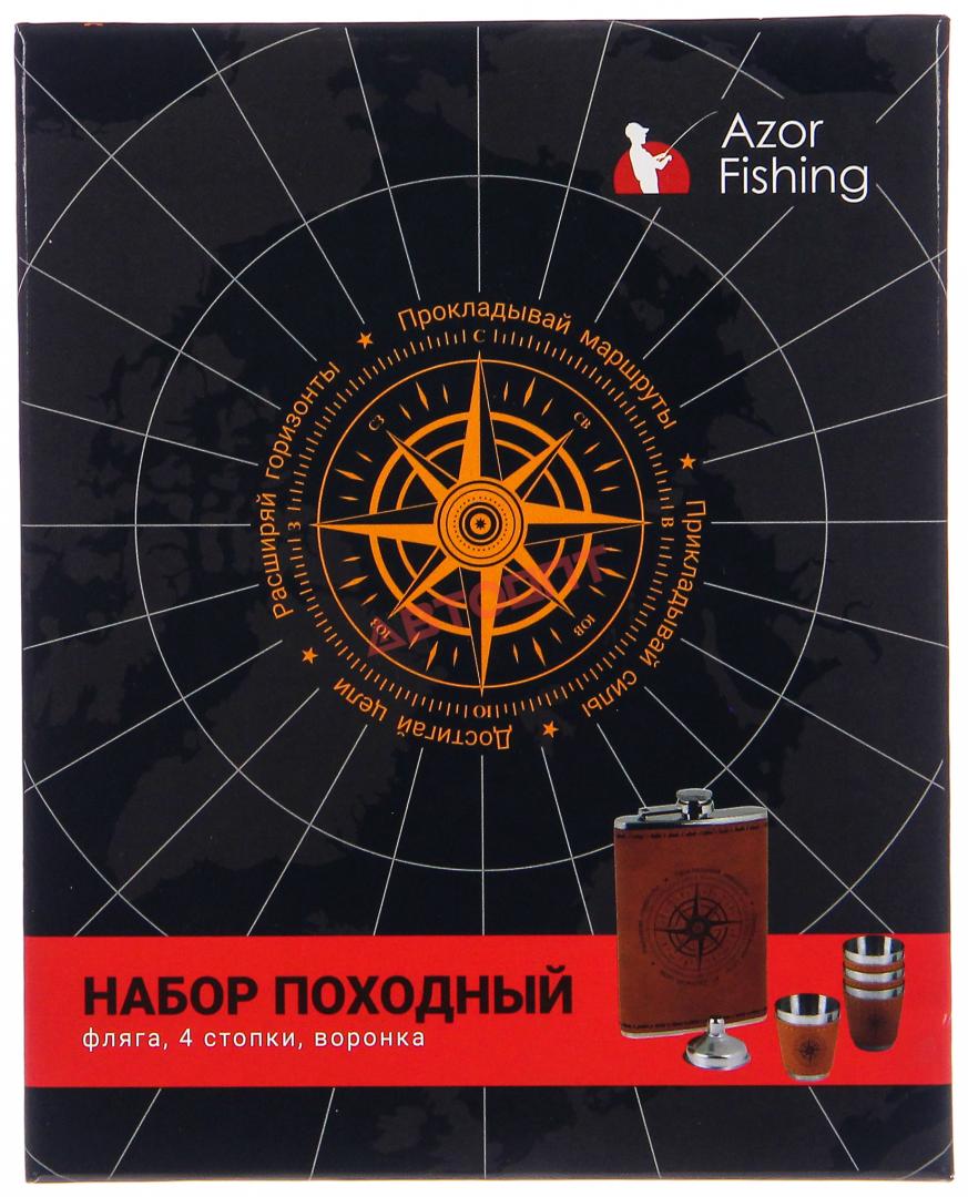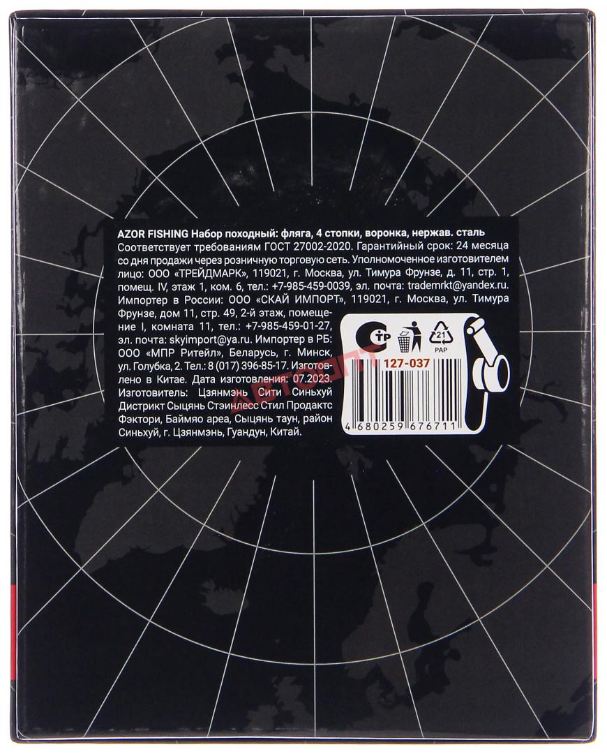 Фляжка 254мл + стопки 4шт + воронка, нерж. сталь, в подарочной упаковке (127-037) "AZORA FISHING"