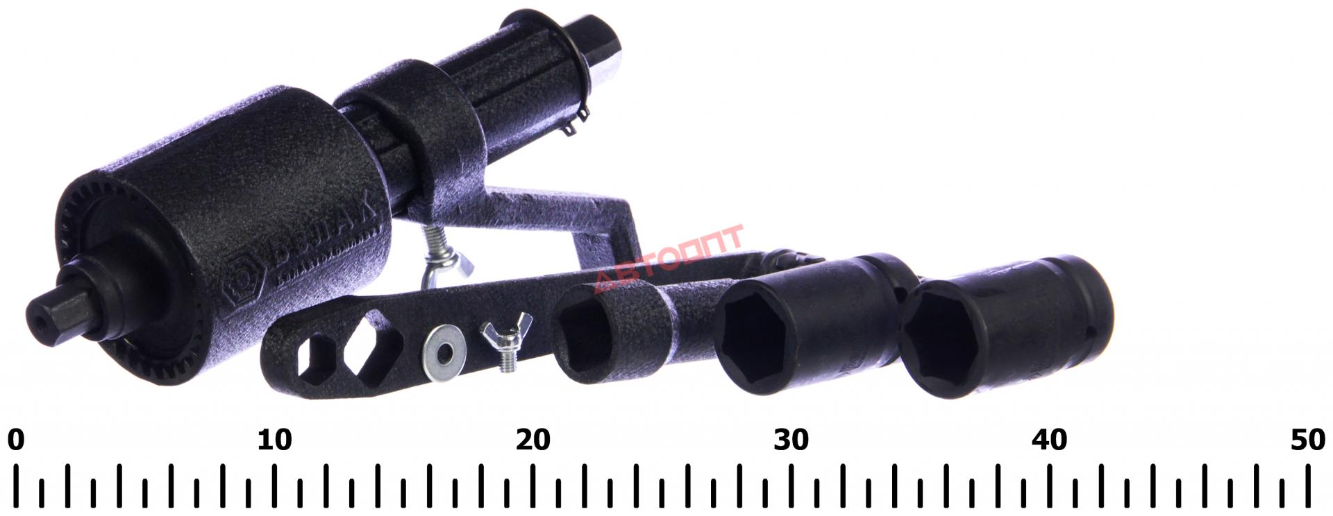 Гайковерт (редукторный) с головками 32 и 33мм, квадрат 1", 1:3.8/1:56, 3000Н/м, 2-х скоростной, с УДЛИНИТЕЛЕМ, в футляре (БАК.00118) "БелАК"