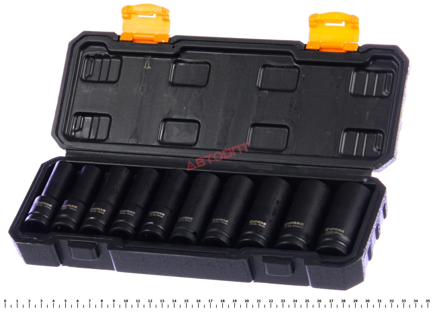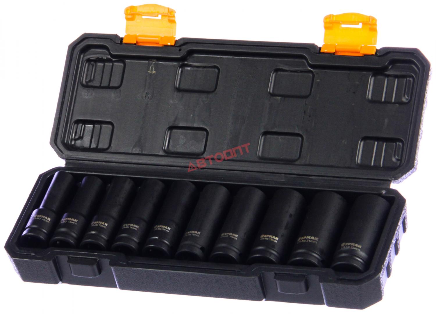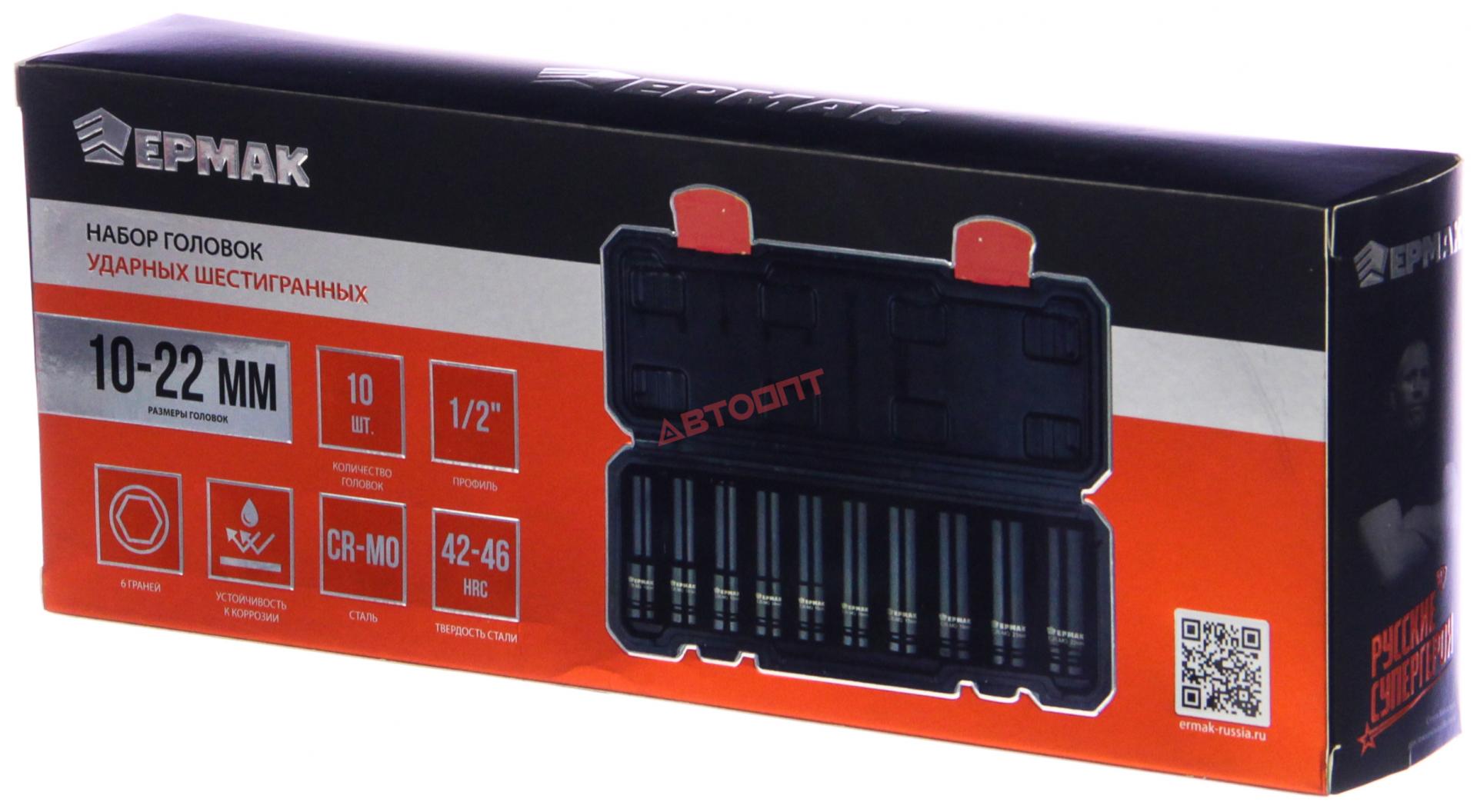 Головка 6-ти гранная глубокая УДАРНАЯ 1/2" набор из 10шт (10,12,13,14,15,16,17,19,21,22мм) в футляре (736-248) "ЕРМАК"
