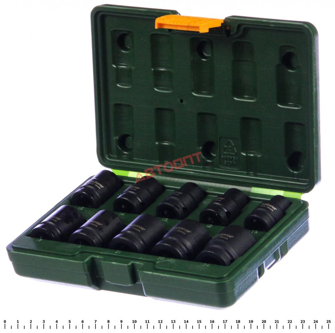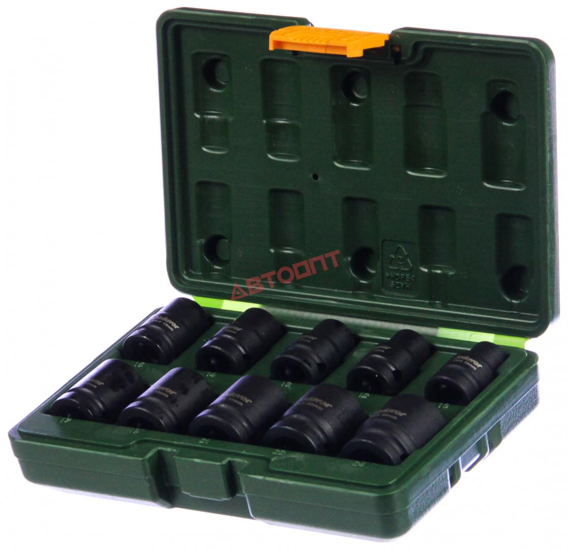 Головка 6-ти гранная глубокая УДАРНАЯ 1/2" набор из 10шт (10,12,13,14,15,17,19,21,22,24мм), H40мм, в футляре (JDMS1D01) "JADEVER"