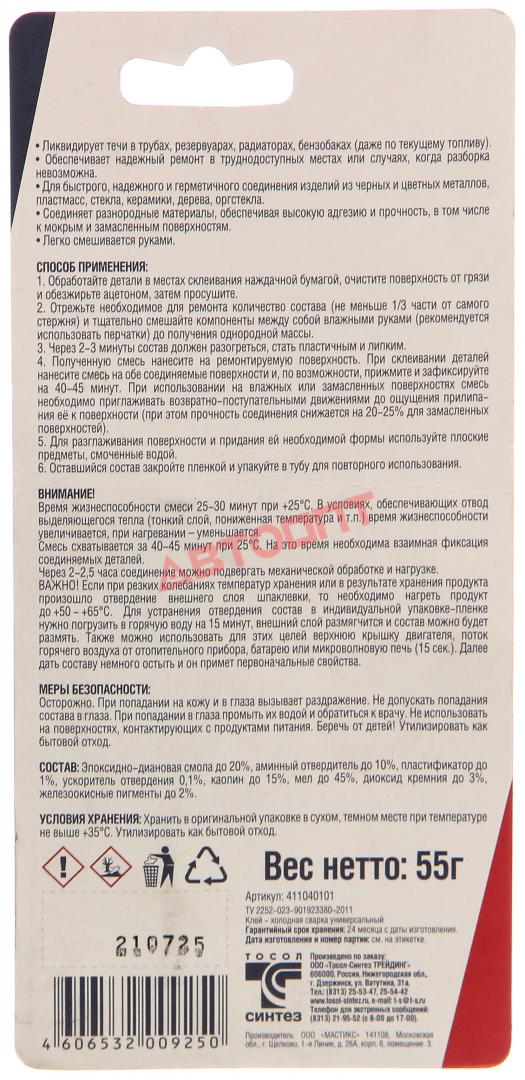 Холодная сварка (универсал) "FELIX" 55 г "Тосол-Синтез" (г.Дзержинск)