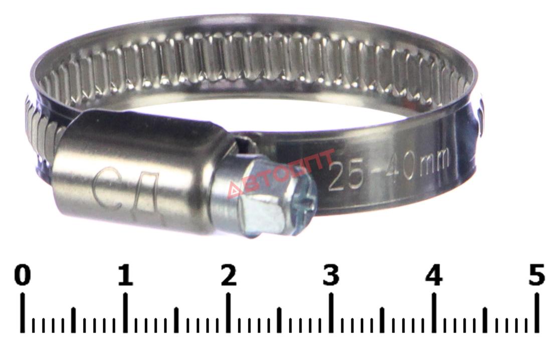 Хомут "СИБДЕТАЛЬ" 25-40 под ключ 8 мм нерж. лента 9 мм