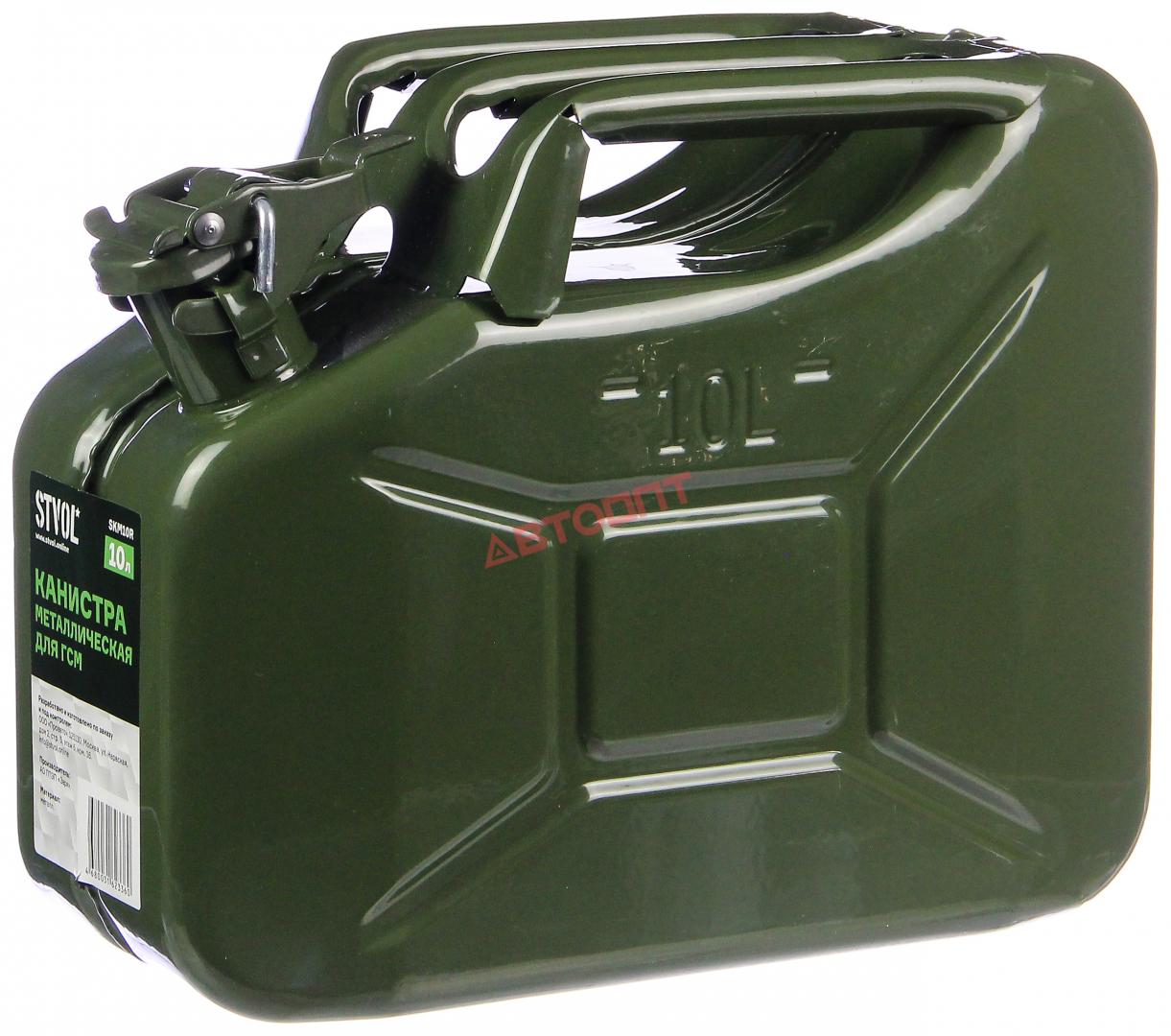Канистра ГСМ 10л металл., с порошковым покрытием, зелёная (SKM10R) "STVOL"