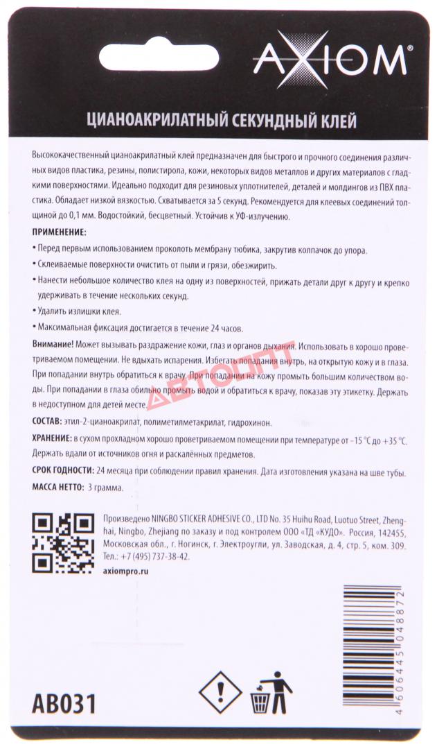 Клей Цианоакрилатный секундный AB031 3 г AXIOM (г.Москва)