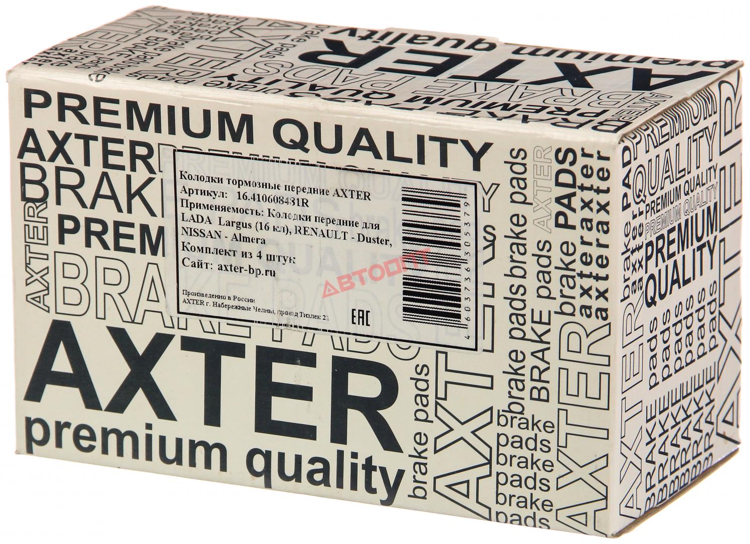 Колодка торм. ВАЗ-2180 Lada VESTA, Lada Largus 16кл, Ren.Logan перед. (410608481R) "AXTER" (г.Наб. Челны)