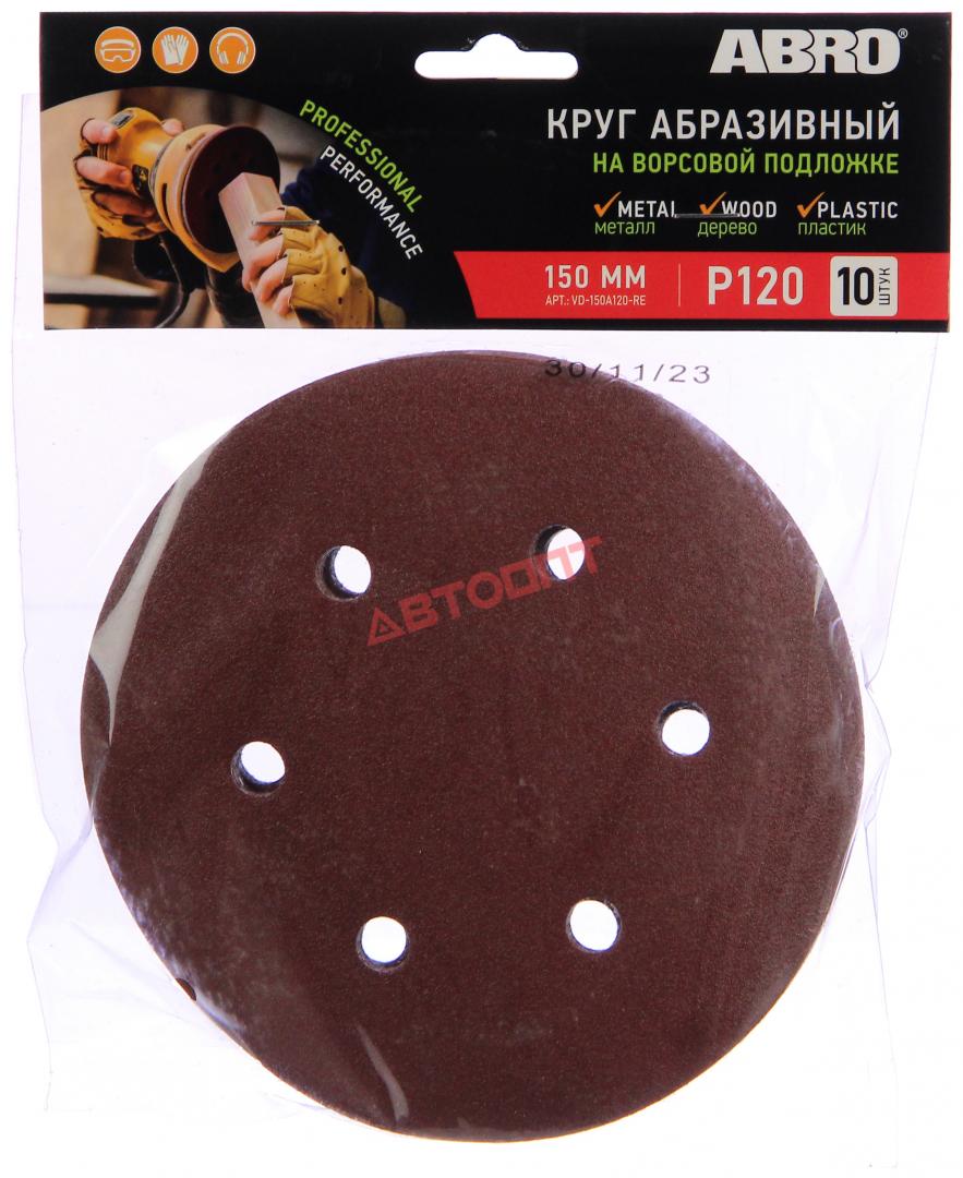 Круг абразивный на ворсовой подложке 150мм, P 120 (VD-150A120-RE) (10шт) "ABRO"