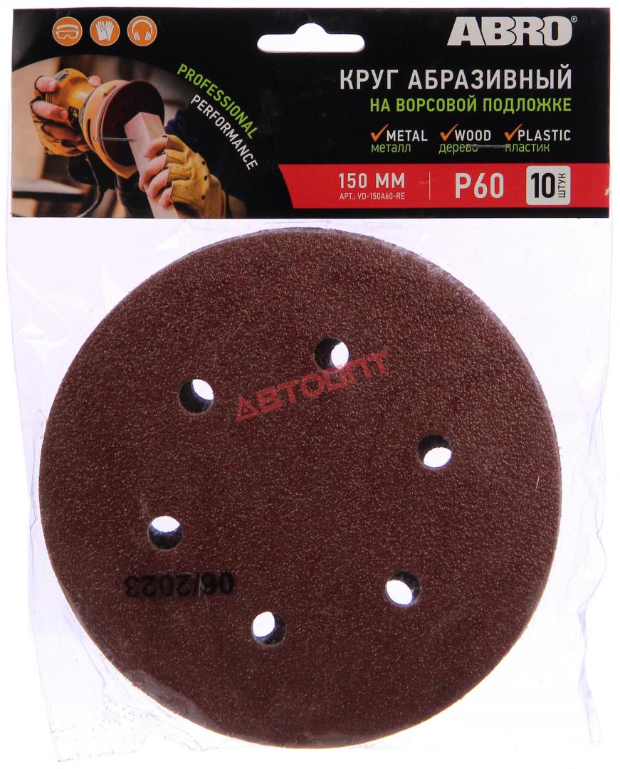 Круг абразивный на ворсовой подложке 150мм, P 60 (VD-150A60-RE) (10шт) "ABRO"