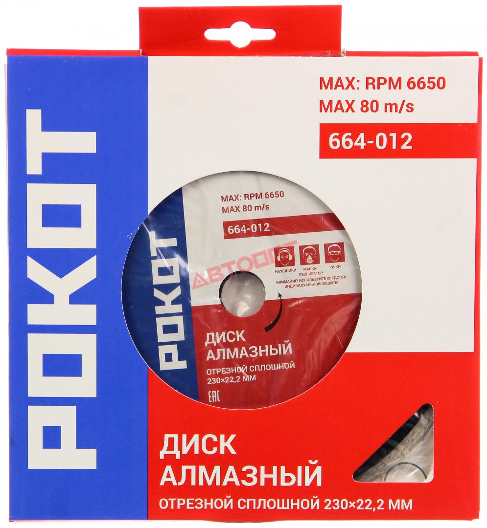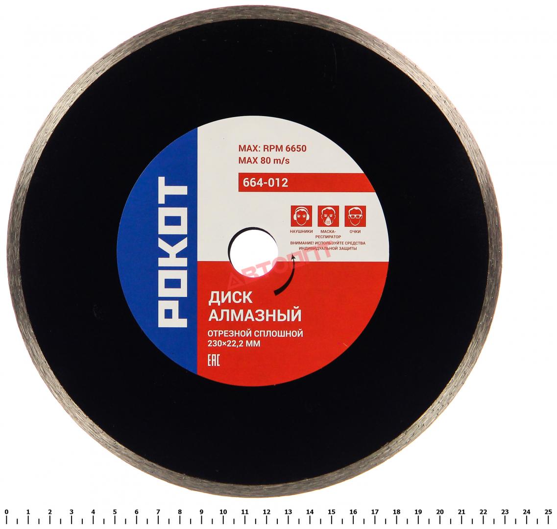 Круг отрезной алмазный "СПЛОШНОЙ" 230х22.2мм (сухой рез: стекло, мрамор, кафель) (664-012) "РОКОТ"