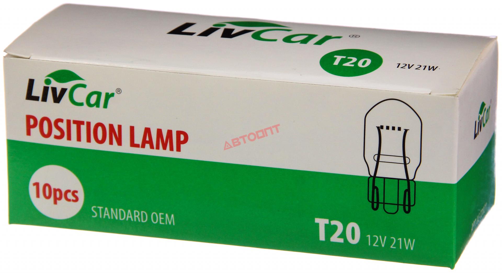 Лампа накаливания LIVCAR POSITION LAMP T20 12V 21W (комплект 10 штук)