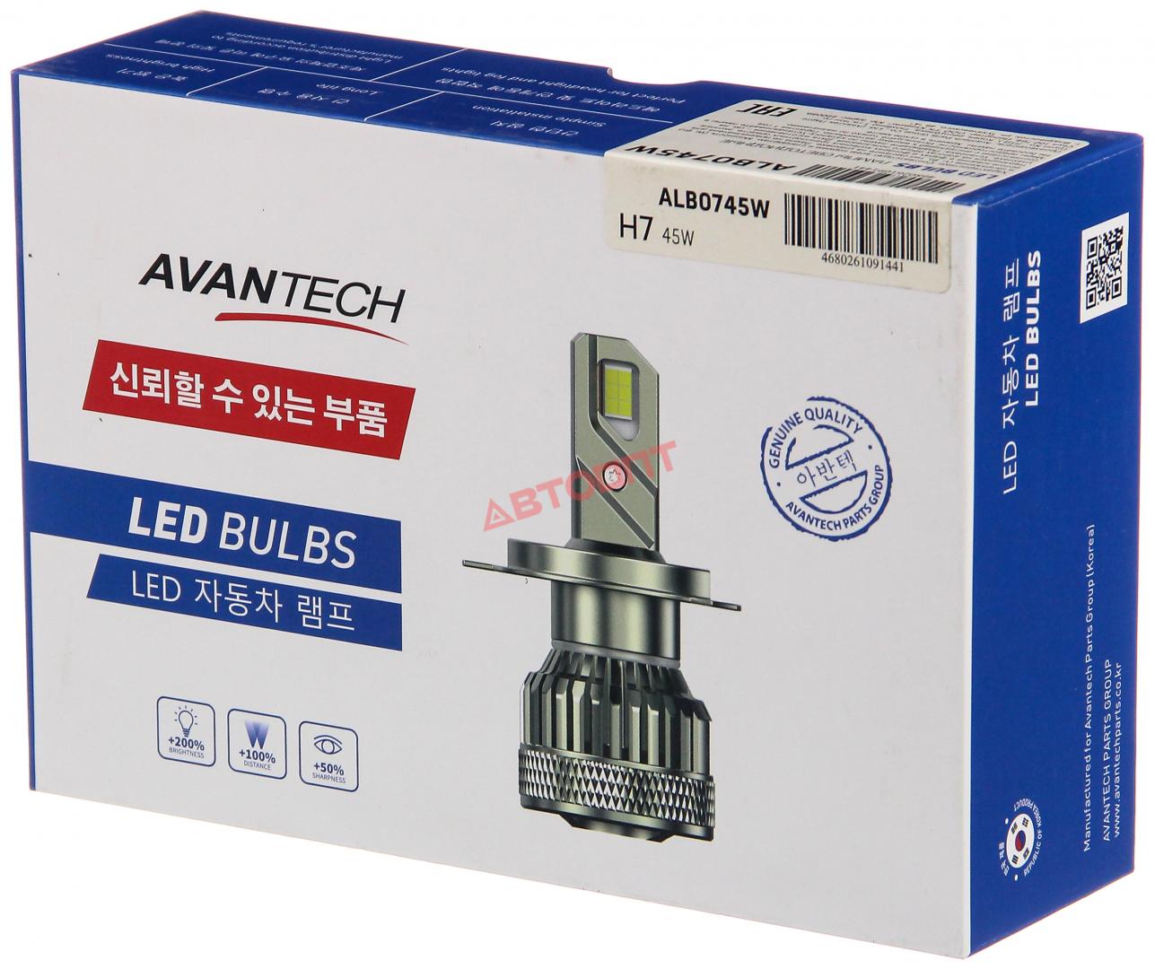 Лампа светодиодная LED H7 12V 45W, 6500К, 4500Lm (ALB0745W) "AVANTECH"