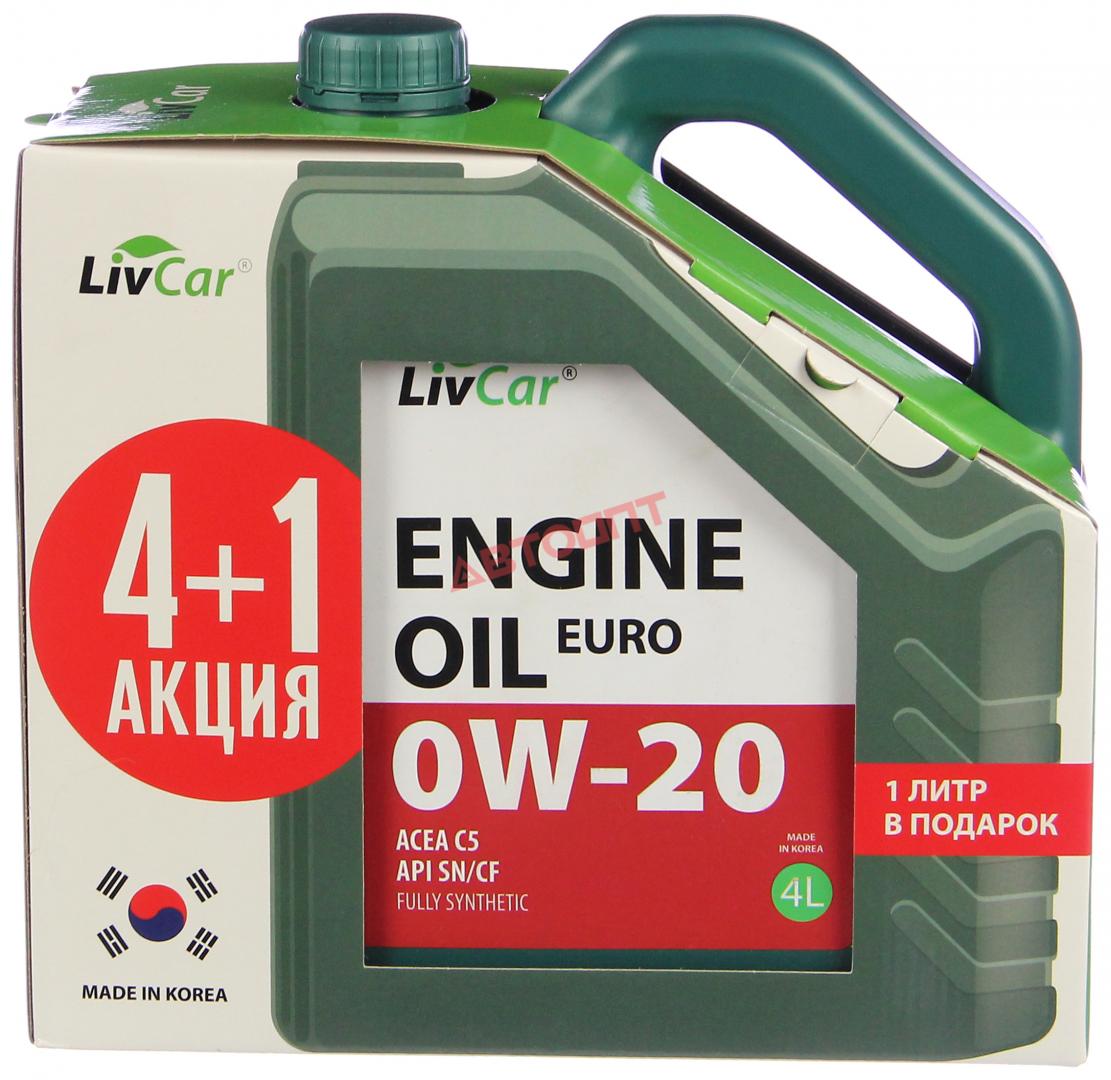 Масло моторное LIVCAR ENGINE OIL EURO 0W20 ACEA C5 API SN/CF ПРОМО КОМПЛЕКТ (4л+1л)