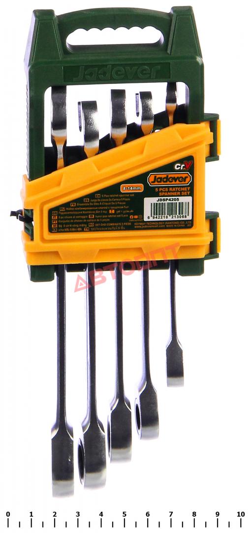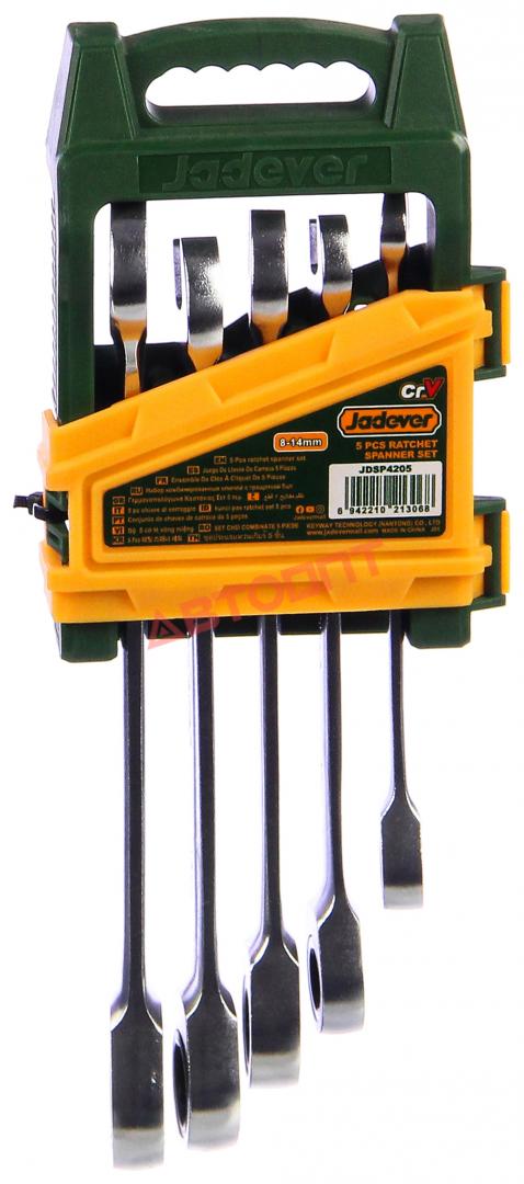 Набор ключей рожково-накидных (5 предм.) ТРЕЩОТОЧНЫХ, пласт. холдер (8,10,12,13,14мм) (JDSP4205) "JADEVER"