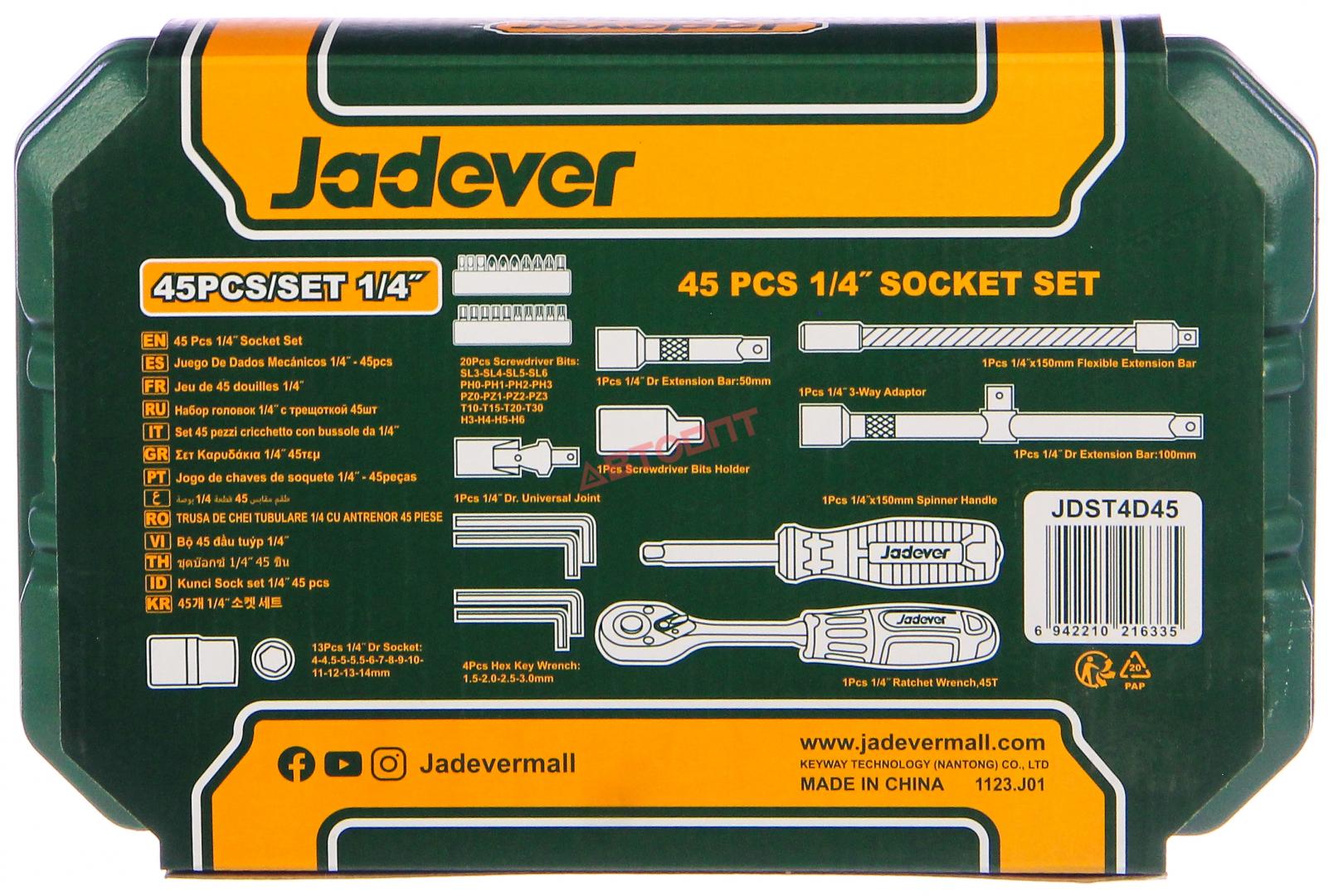 Набор проф. инструмента 1/4" (45 предм.) 6-гран. (JDST4D45) в футляре "JADEVER"