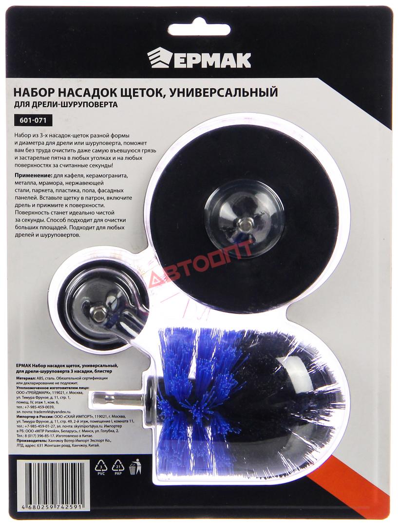 Набор щеток капрон. для ДРЕЛИ (3 предм.), блистер (601-071) "ЕРМАК" (Китай)