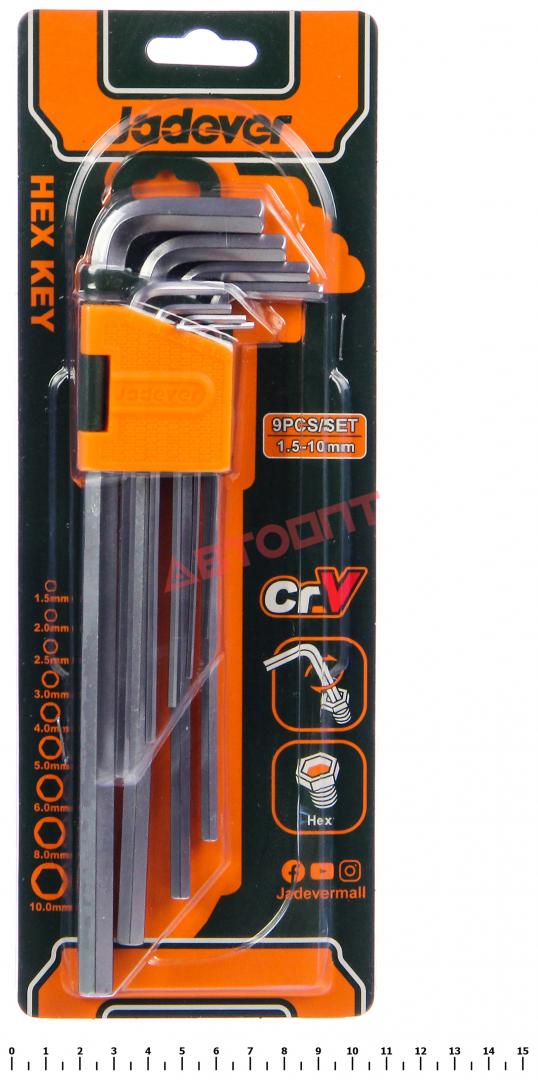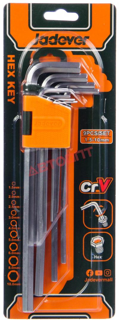 Набор шестигранников (блистер) 1,5-10мм, (9шт) удлин., на пластик. держателе (JDHK1292) "JADEVER"