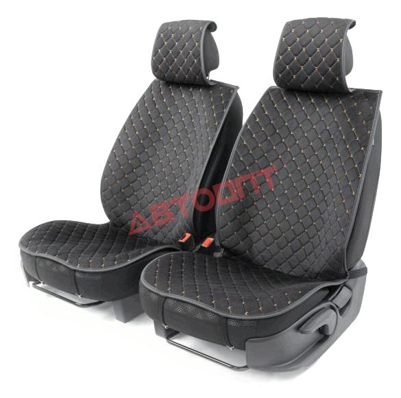 Накидка передняя сиденье (2 шт.) Черный/бежевый ромб алькантара (CUS-1012 BK/BE) "CAR PERFORMANCE"