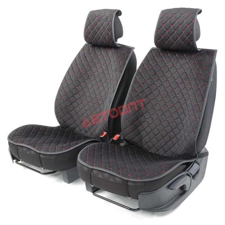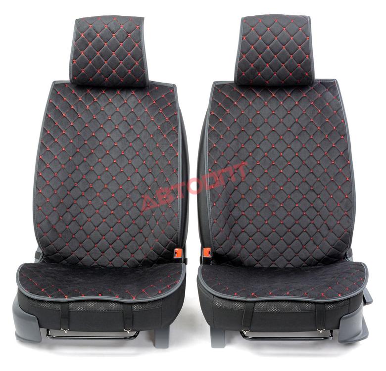 Накидка передняя сиденье (2 шт.) Черный/красный ромб алькантара (CUS-1012 BK/RD) "CAR PERFORMANCE"