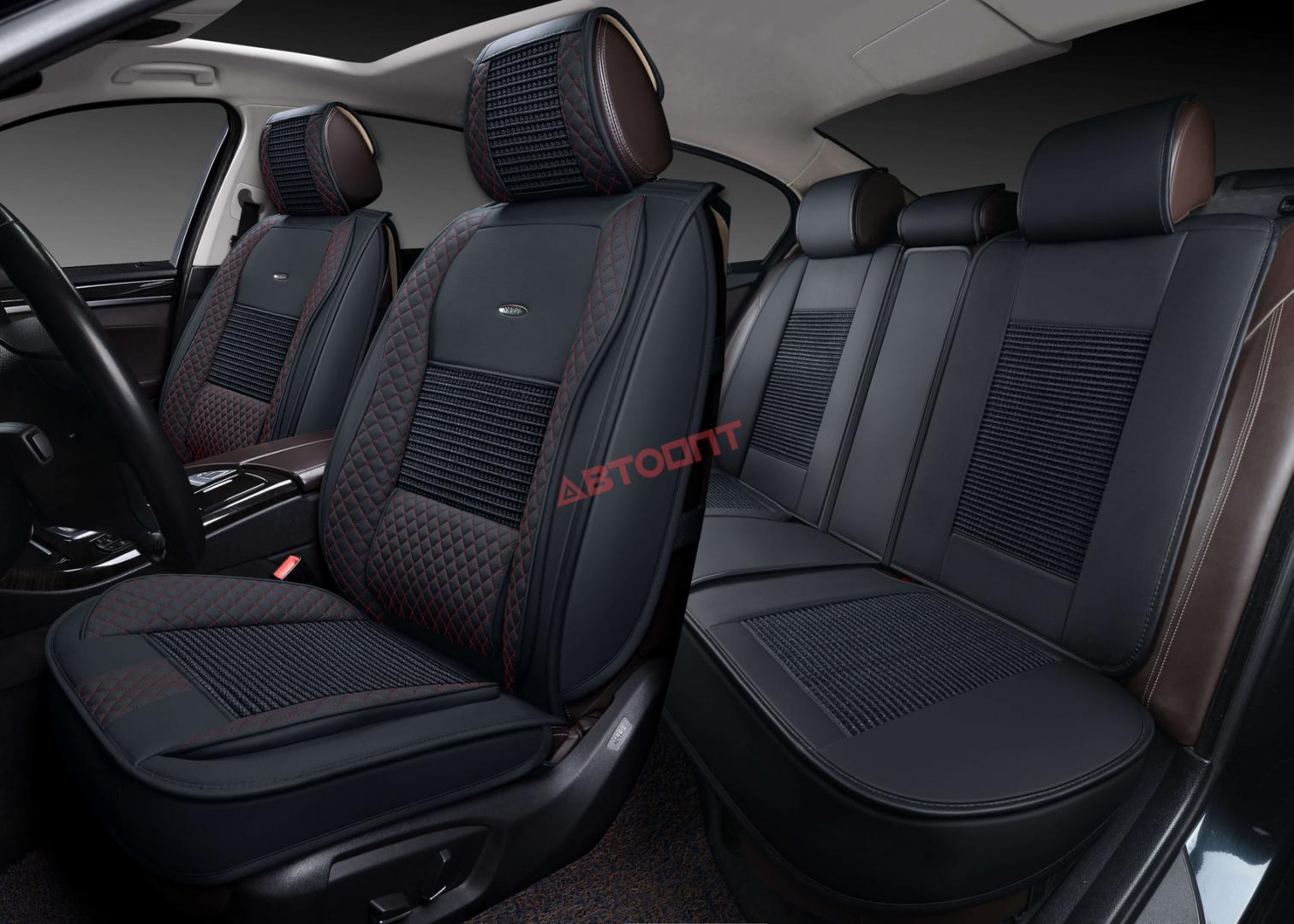 Накидка весь салон (4 шт. 11 пр.) (Черный/красный экокожа+лён) (135685) 3D PSV Lint