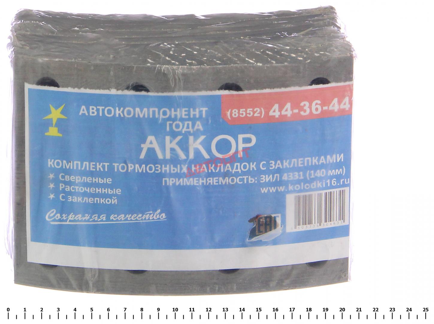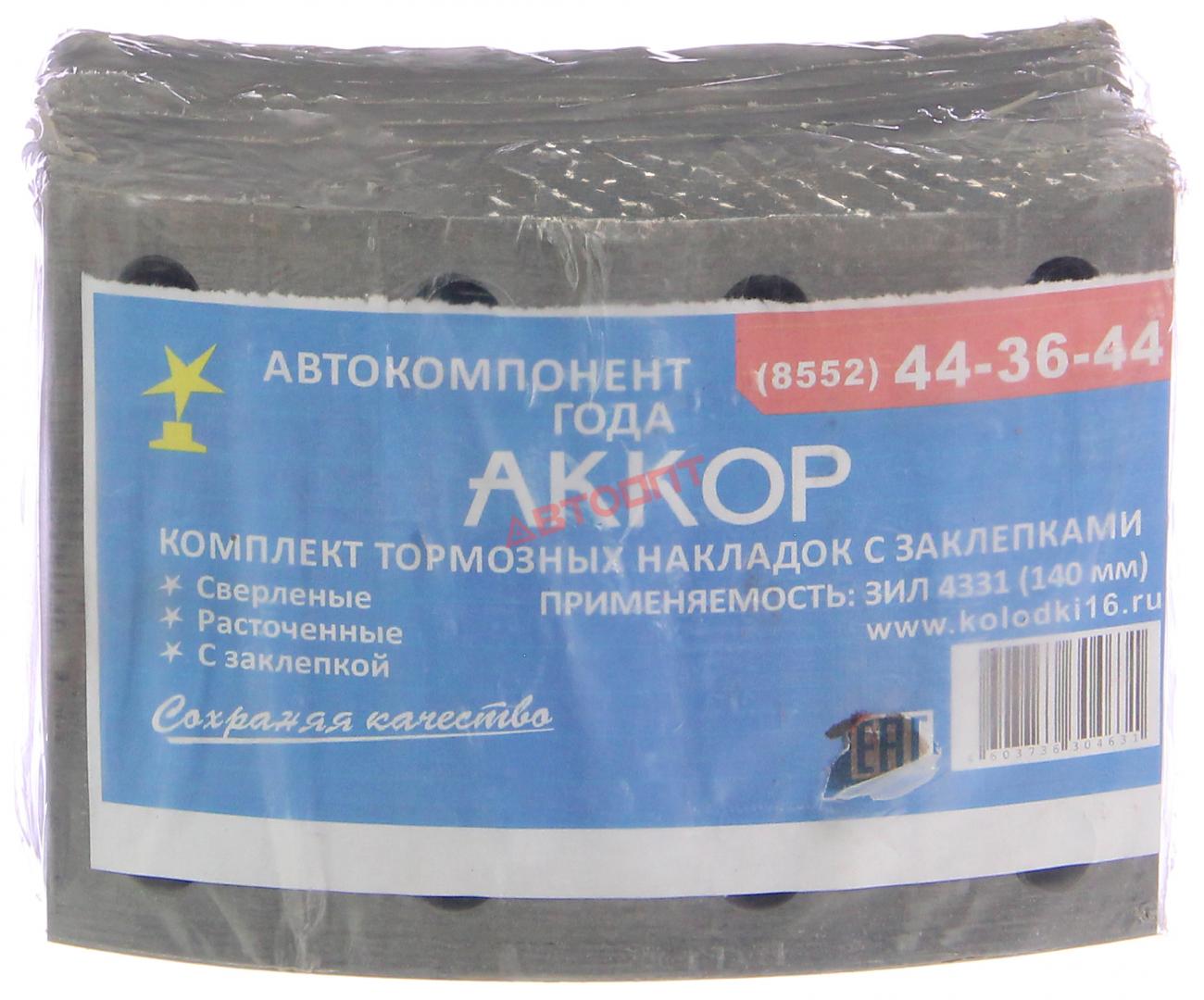Накладка тормозная ЗИЛ, ПАЗ [ЗИЛ-4331; ЗИЛ-43360; ПАЗ-32053; ПАЗ-4234](4331-3502105) к-т 8 шт АККОР