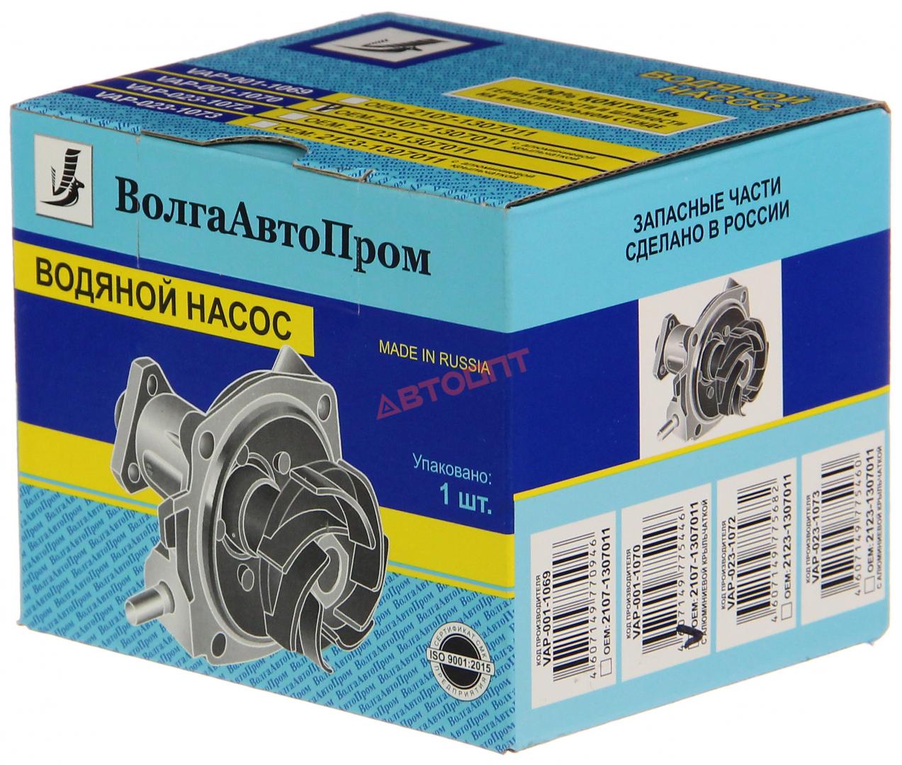 Насос водяной ВАЗ-2101-2107,2121,21213,2131,21214 алюмин. крыльчатка (2107-1307010) "ВолгаАвтоПром ПО"