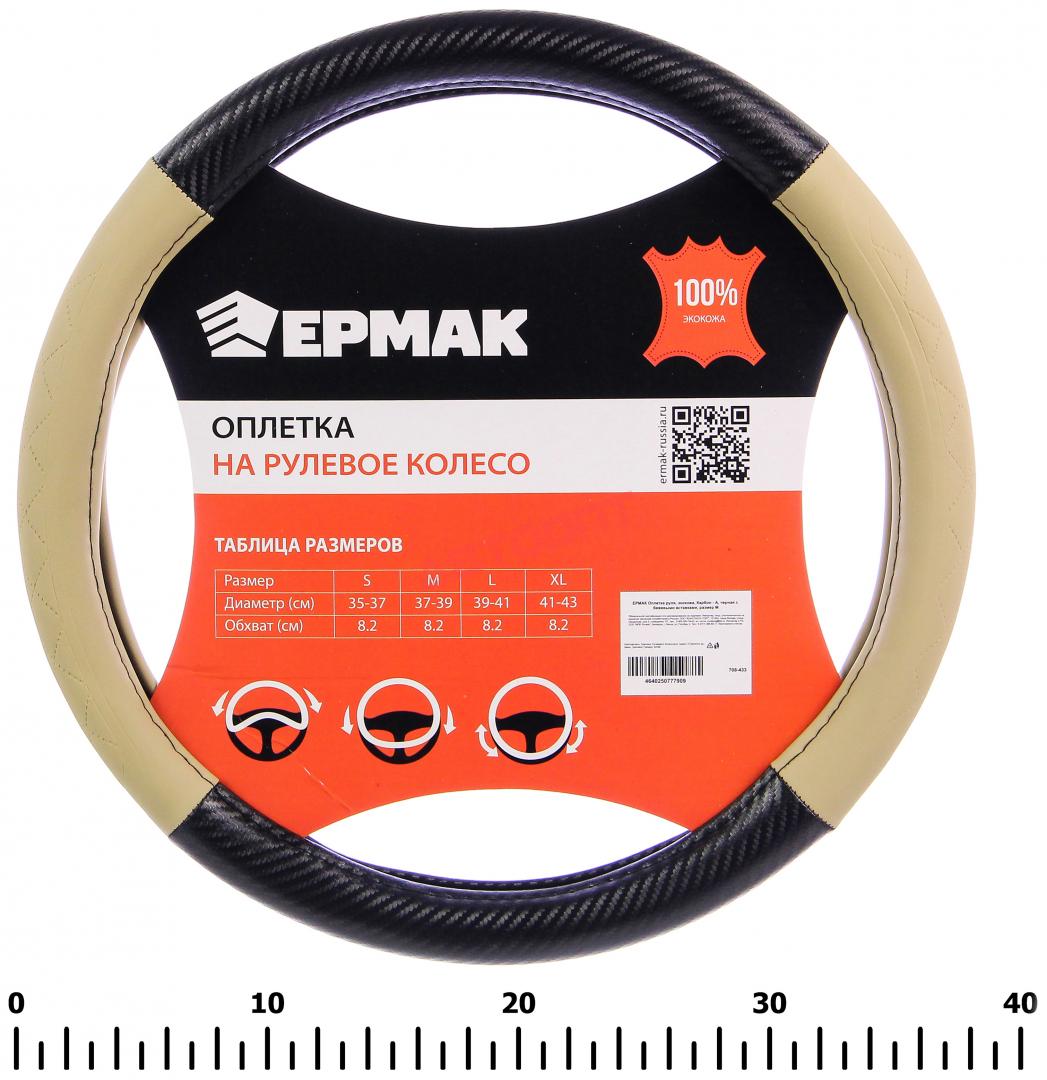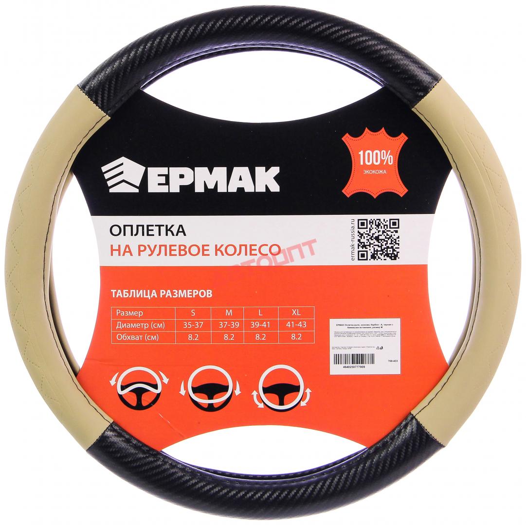 Оплетка M экокожа, со вставками "Карбон", чёрно-бежевый (708-433) "ЕРМАК"