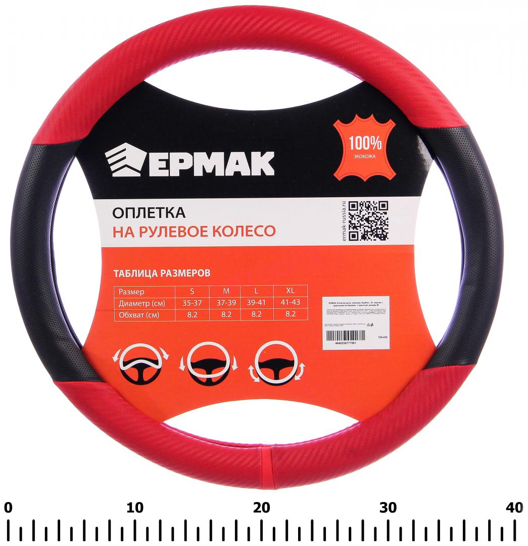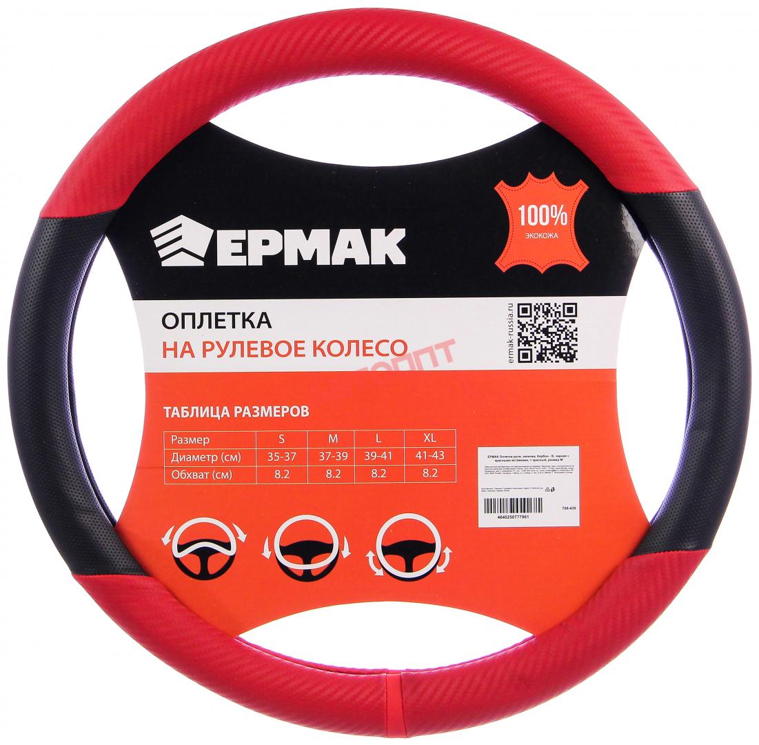 Оплетка M экокожа, со вставками "Карбон", чёрно-красный + красный (708-439) "ЕРМАК"