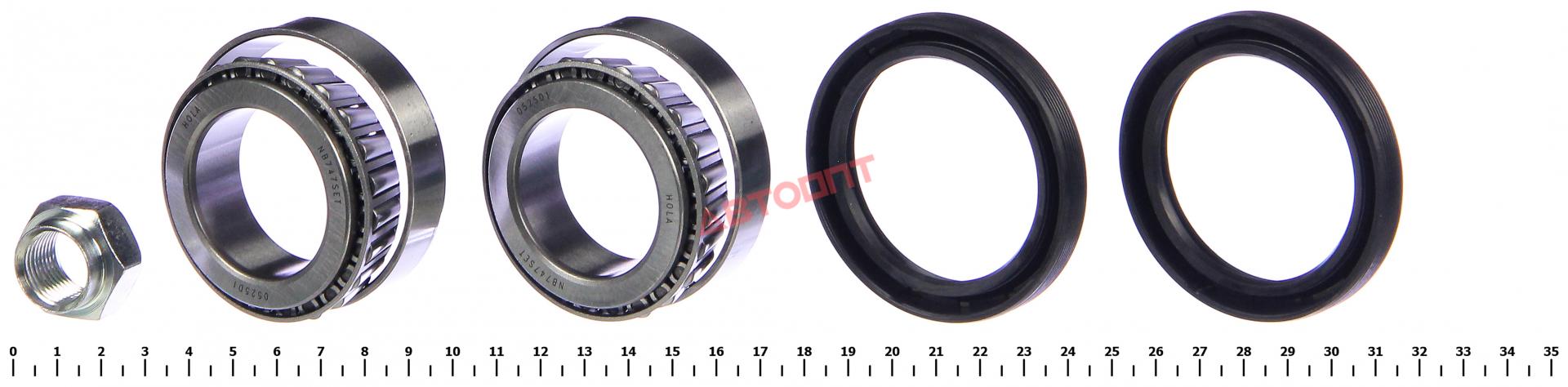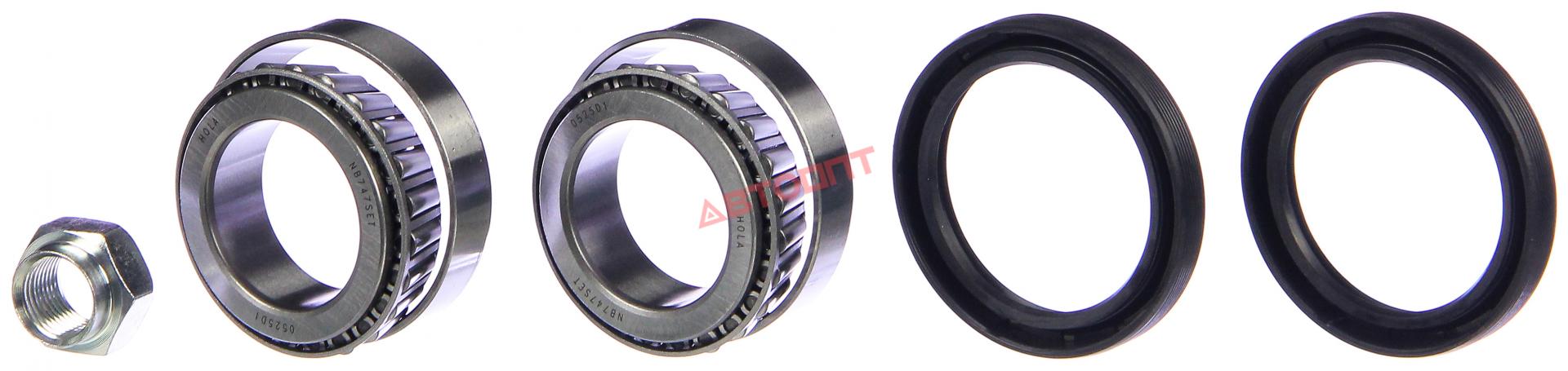 Подшипник перед. ступ. ВАЗ-2121 (Шеви НИВА, Надежда) (внутр.+ наруж., сальник 2шт, гайка) (NB747SET) "HOLA"