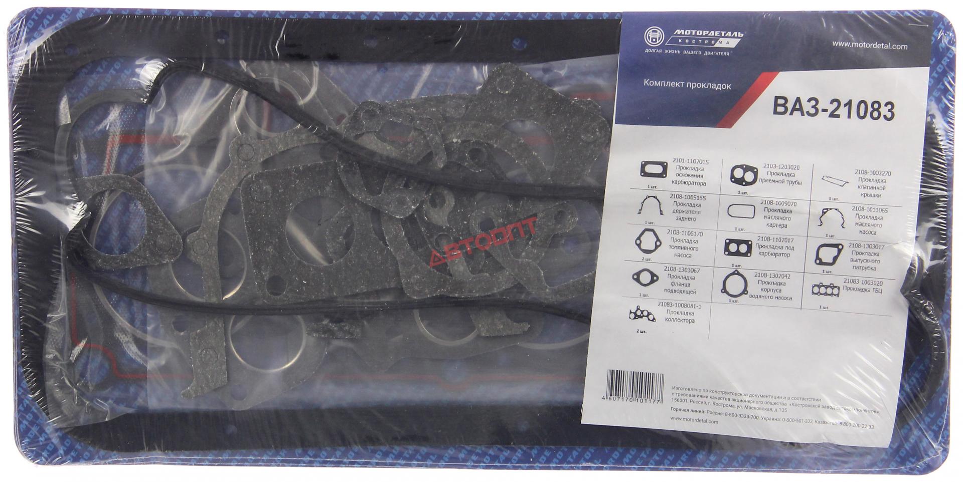 К-кт прокладок для дв. ВАЗ-21083 82мм (21083-1003020) Мотордеталь г.Кострома