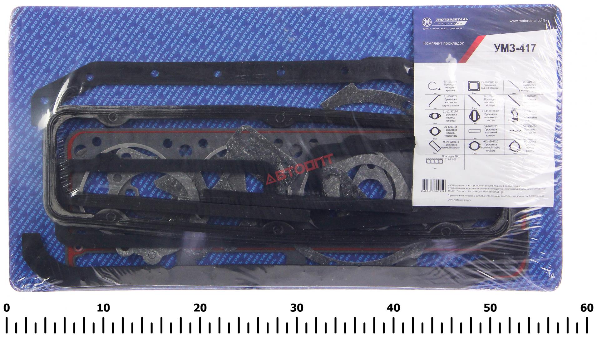 К-кт прокладок двигателя УАЗ [дв.УМЗ-417 и его модиф.] Мотордеталь г.Кострома