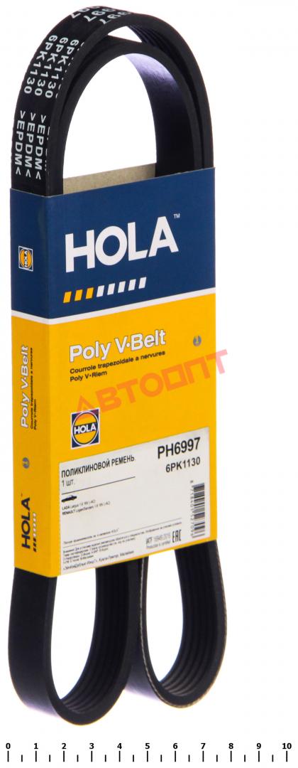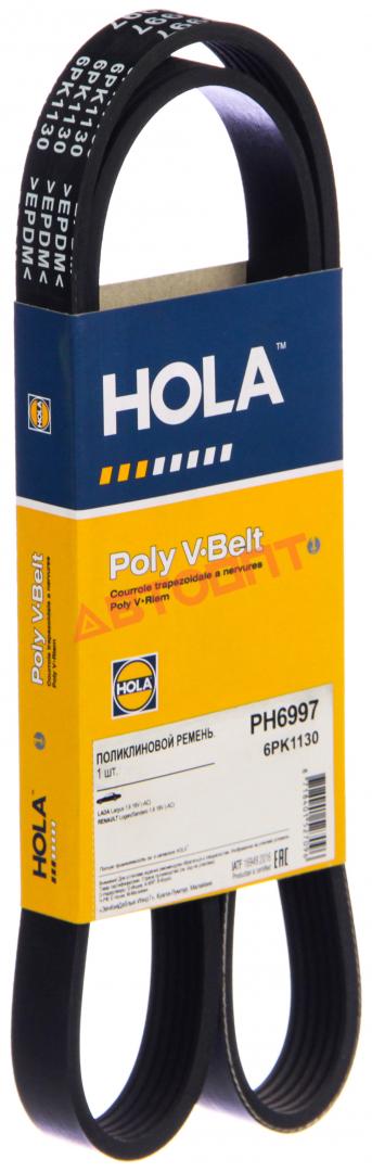 Ремень поликлиновой 6PK 1130 LADA Largus 1.6 16V, RENAULT Logan/Sandero 1.6 16V без кондиц. (PH6997) "HOLA"