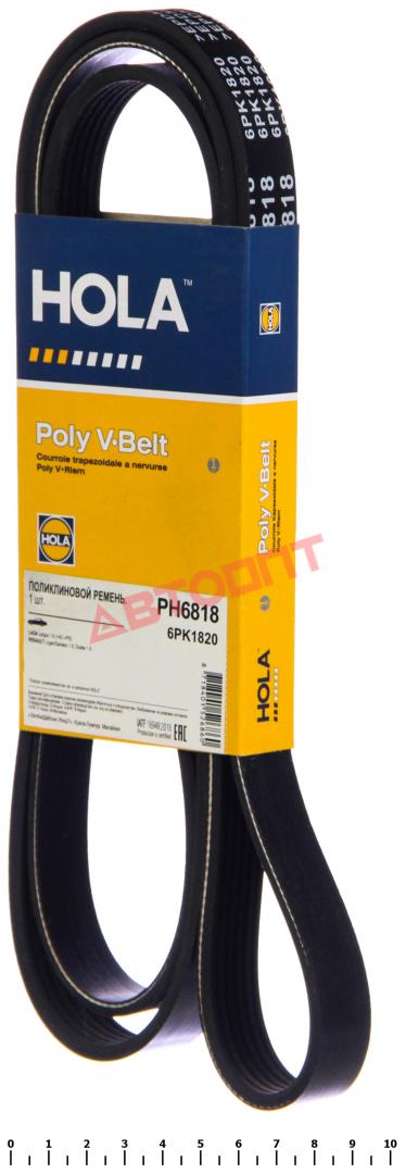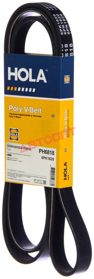 Ремень поликлиновой 6PK 1820 LADA Largus 1.6 с кондиц. и с ГУР (PH6818) "HOLA"