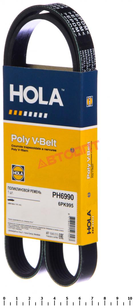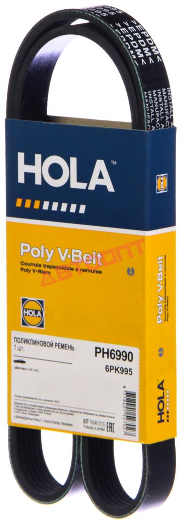 Ремень поликлиновой 6PK 995 ВАЗ-2190 Гранта,Калина II с кондиционером (PH6990) "HOLA"