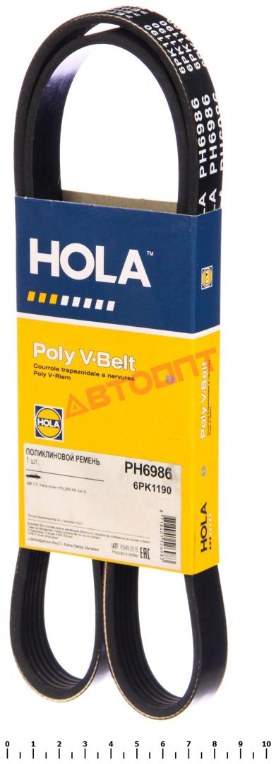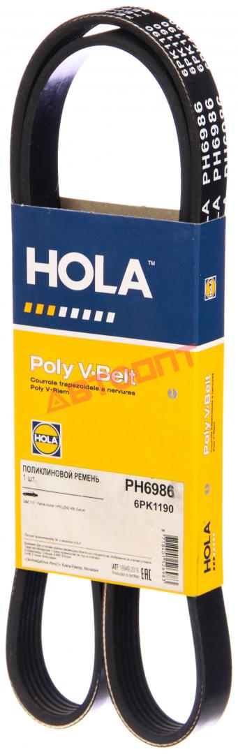 Ремень поликлиновой 6PK1190 с ГУР УАЗ HUNTER 3151, Patriot (дв.ЗМЗ 409, ЕВРО-4) (PH6986) "HOLA"