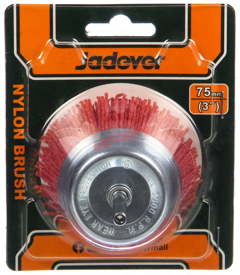 Щетка метал. для ДРЕЛИ (со шпилькой) d75мм, ЧАШКА, полимерно-абразивная, блистер (JDNY1402) "JADEVER"