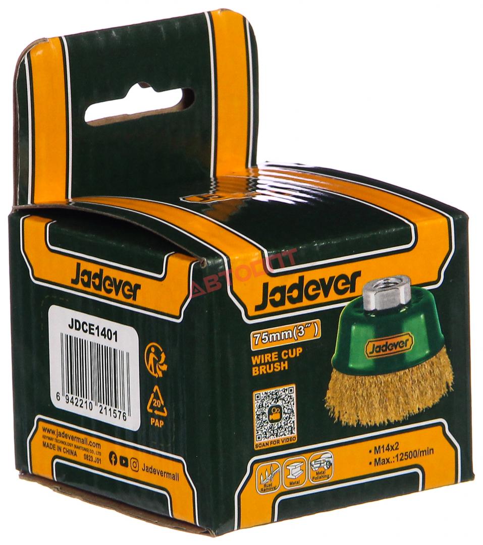 Щетка метал. для УШМ 75/М14, ЧАШКА, мягкая, картонная коробка (JDCE1401) "JADEVER"
