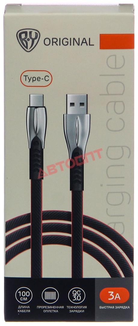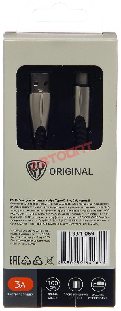 Шнур USB Type-C, 1м, 3А, черный, "Кобра" (931-069) "BY"