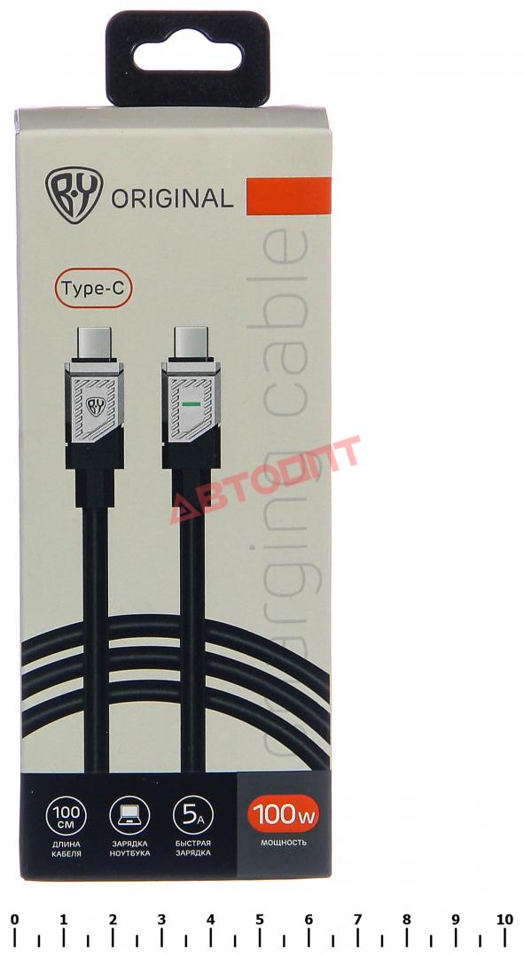 Шнур USB Type-C, 1м, 5А, черный, БЫСТРАЯ ЗАРЯДКА PD 100W (931-536) "BY"