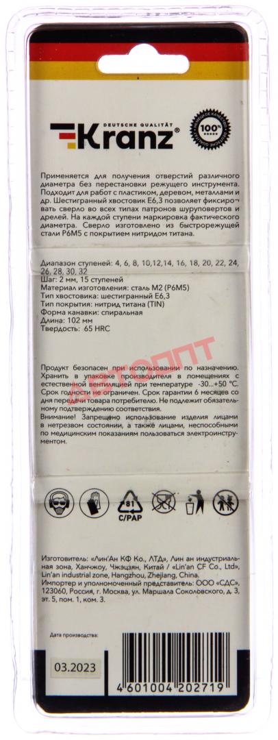 Сверл по металлу СТУПЕНЧАТОЕ, титановое (4-32мм) P6M5 TITAN (KR-12-6613) "KRANZ" (Китай)
